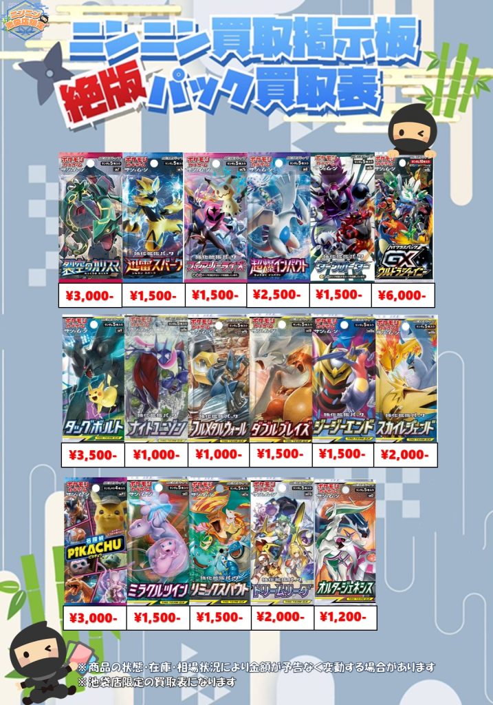 ニンニン池袋店限定で絶版パックの買取を行っております!