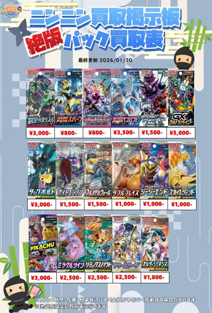 ニンニン池袋店限定で絶版パックの買取を行っております🔥